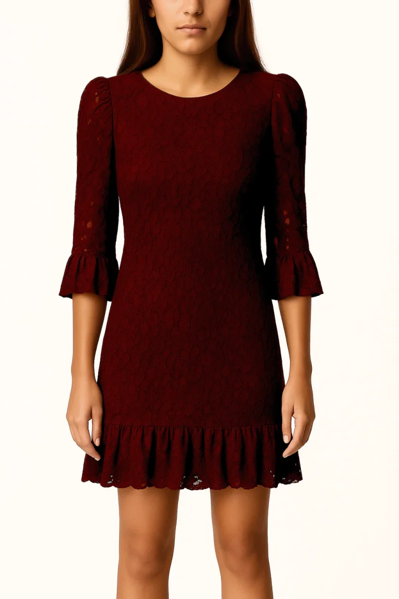 ANDREA – Abito Corto in Pizzo Bordeaux