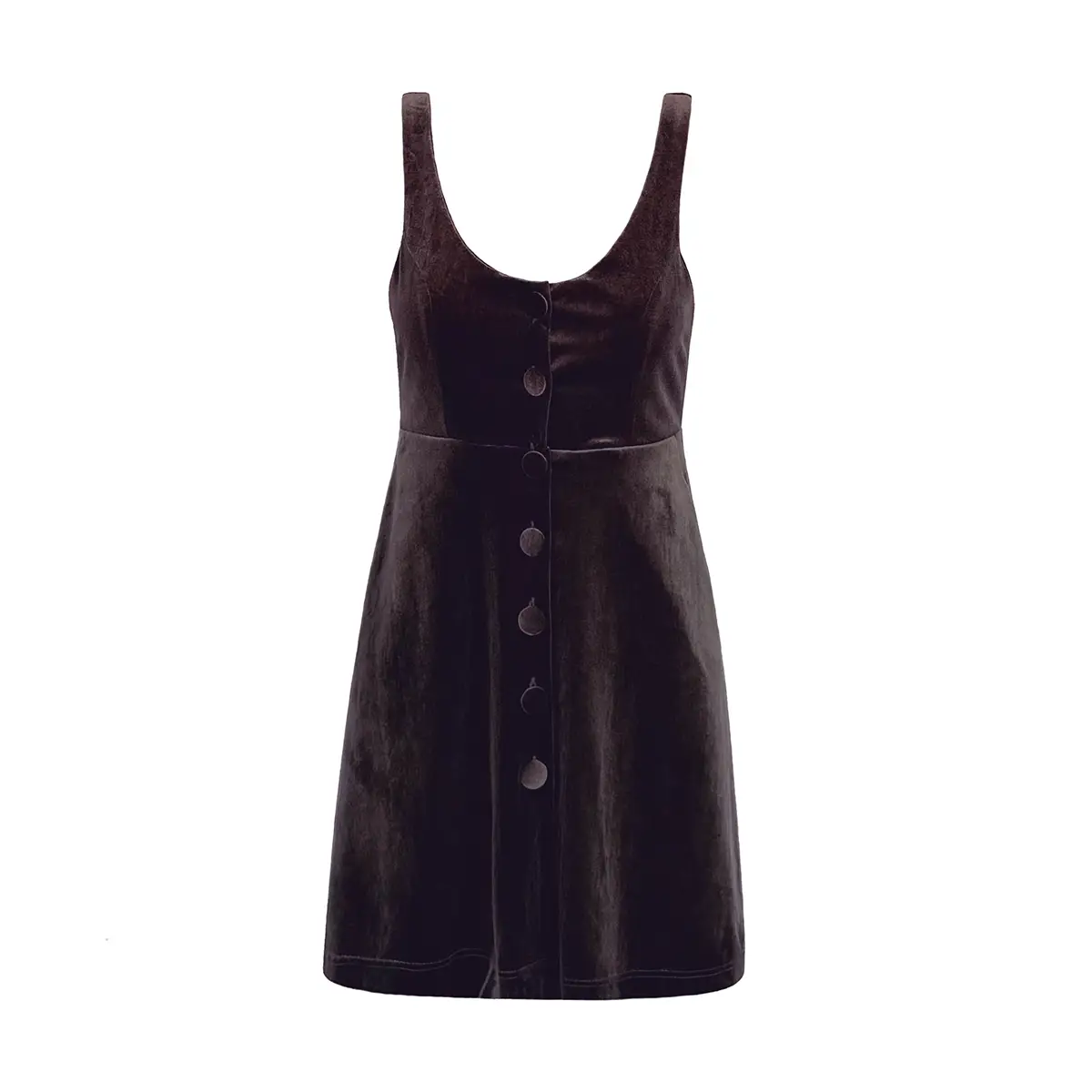 Un capolavoro di eleganza autunnale dove il calore del marrone ciniglia incontra la raffinatezza del design minimalista. Questo mini dress senza maniche è l’essenza della femminilità sofisticata: versatile, avvolgente e perfetto per la stagione fredda.