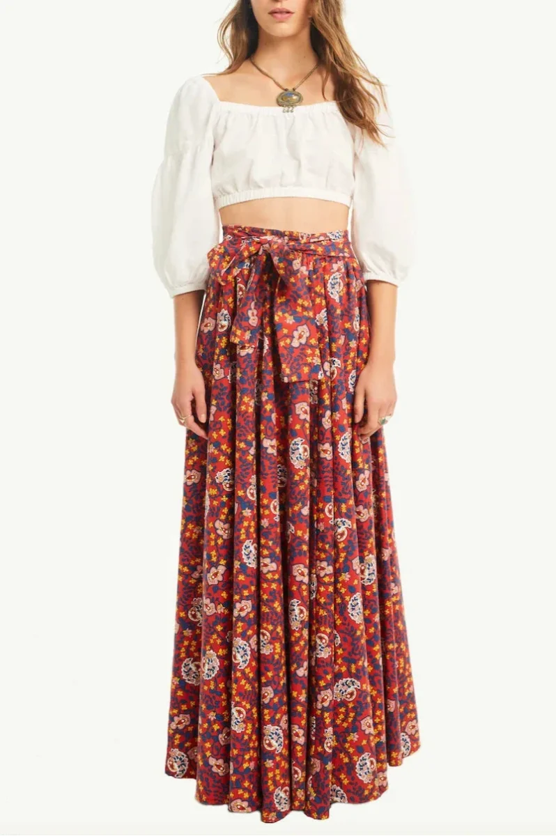 La gonna lunga FIORDALISA in cotone presenta l’iconica stampa Red Obsession. Un capo Made in Italy che unisce eleganza e comfort, con una silhouette ampia e fluida e una raffinata cintura con fiocco.